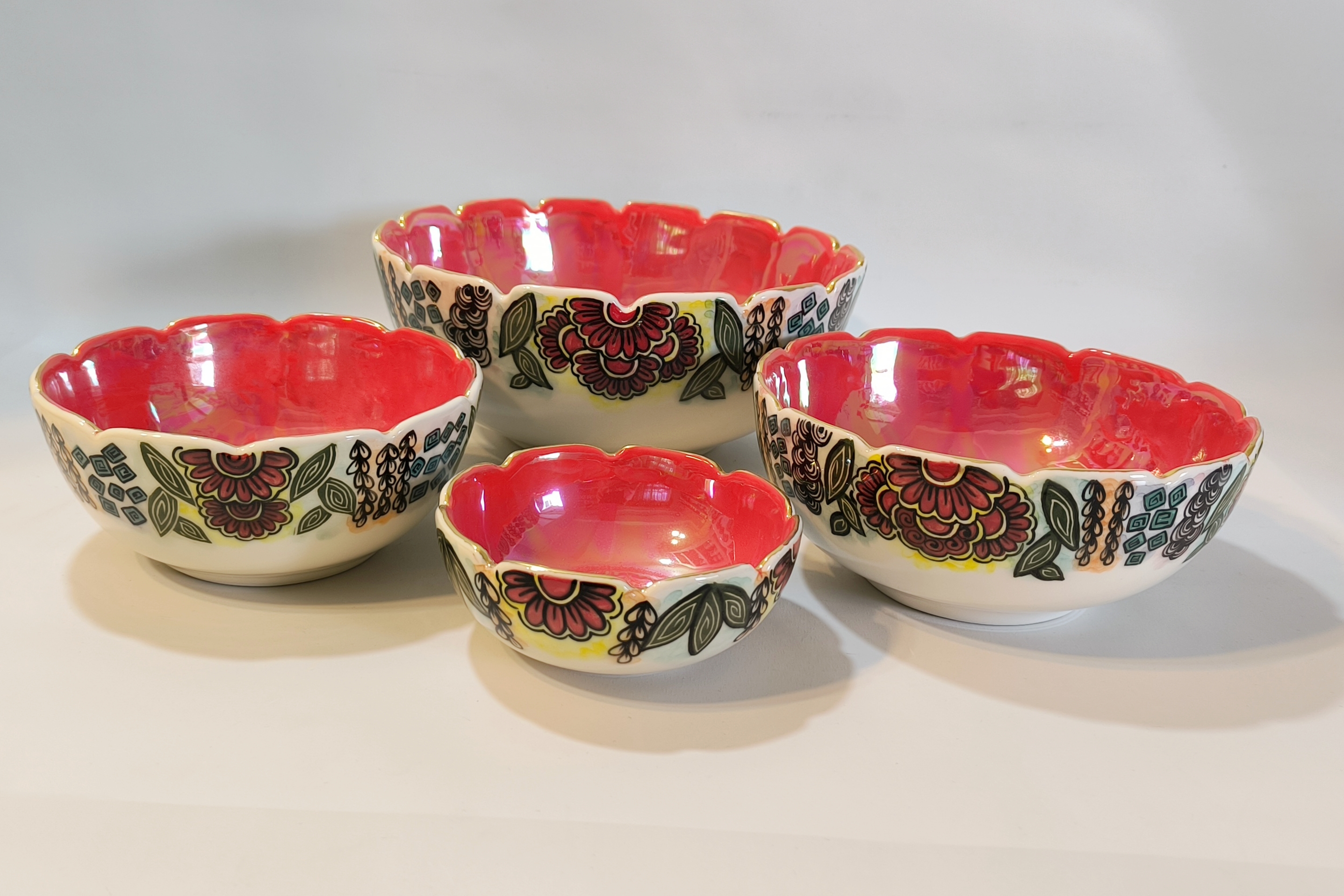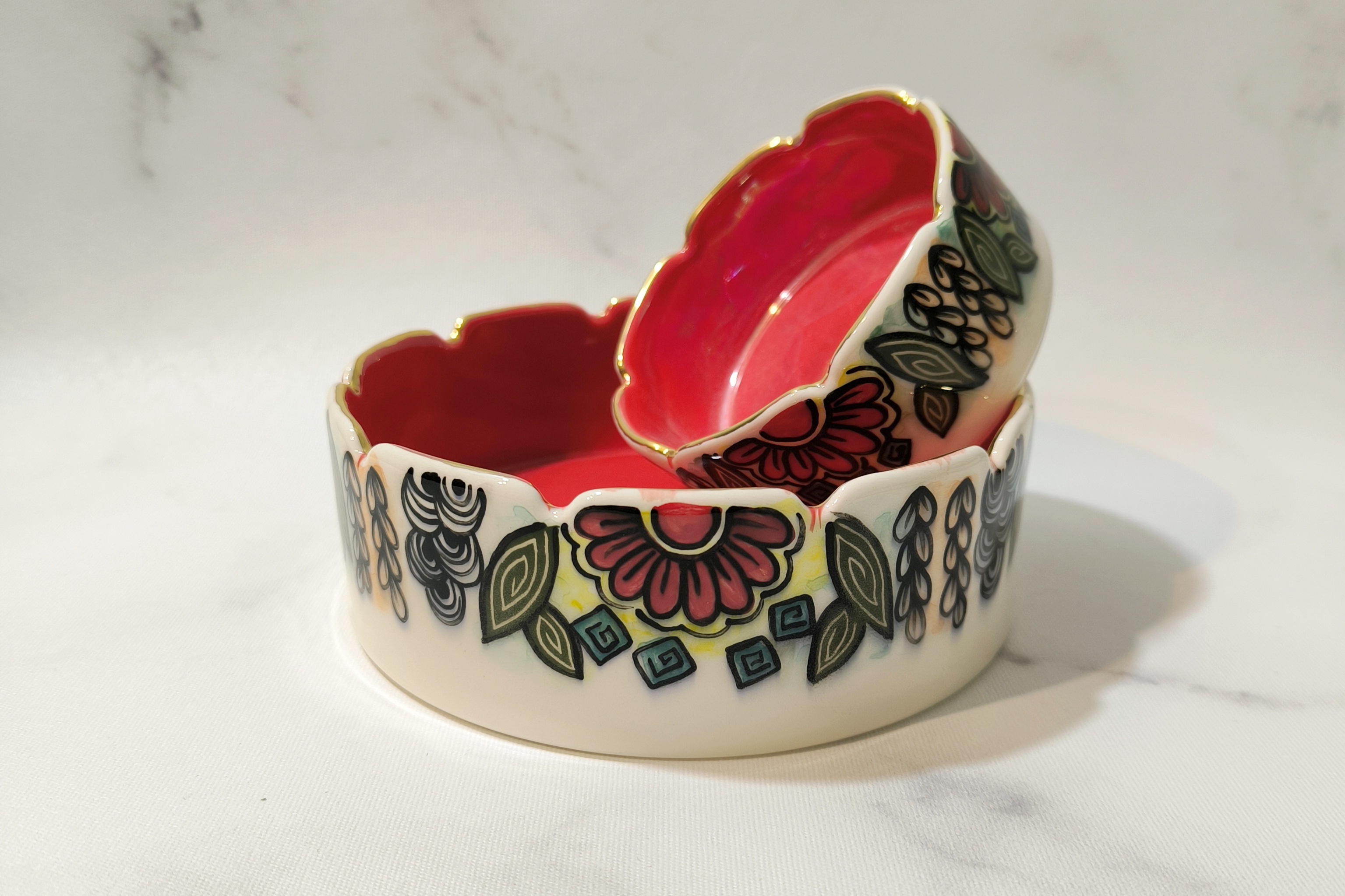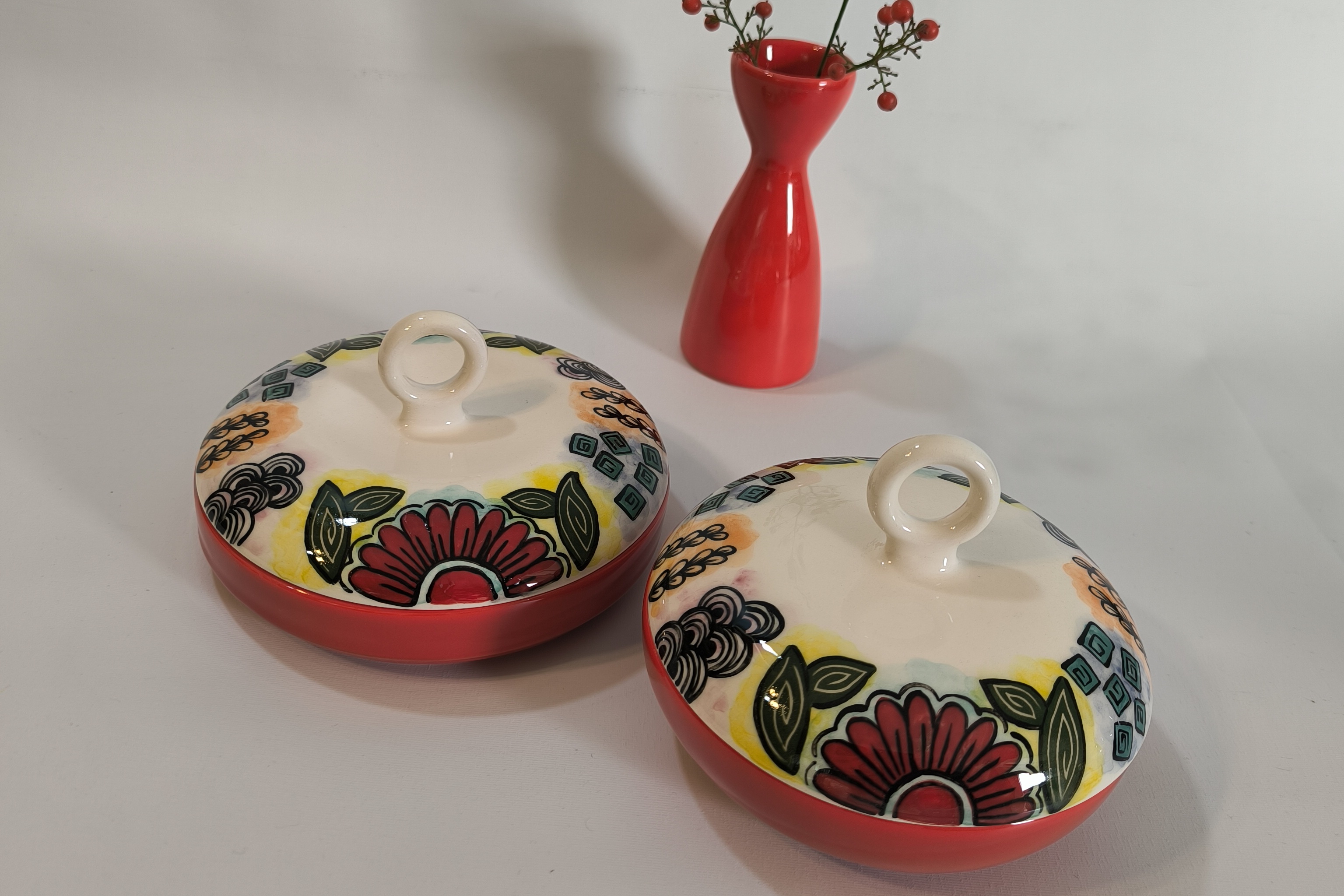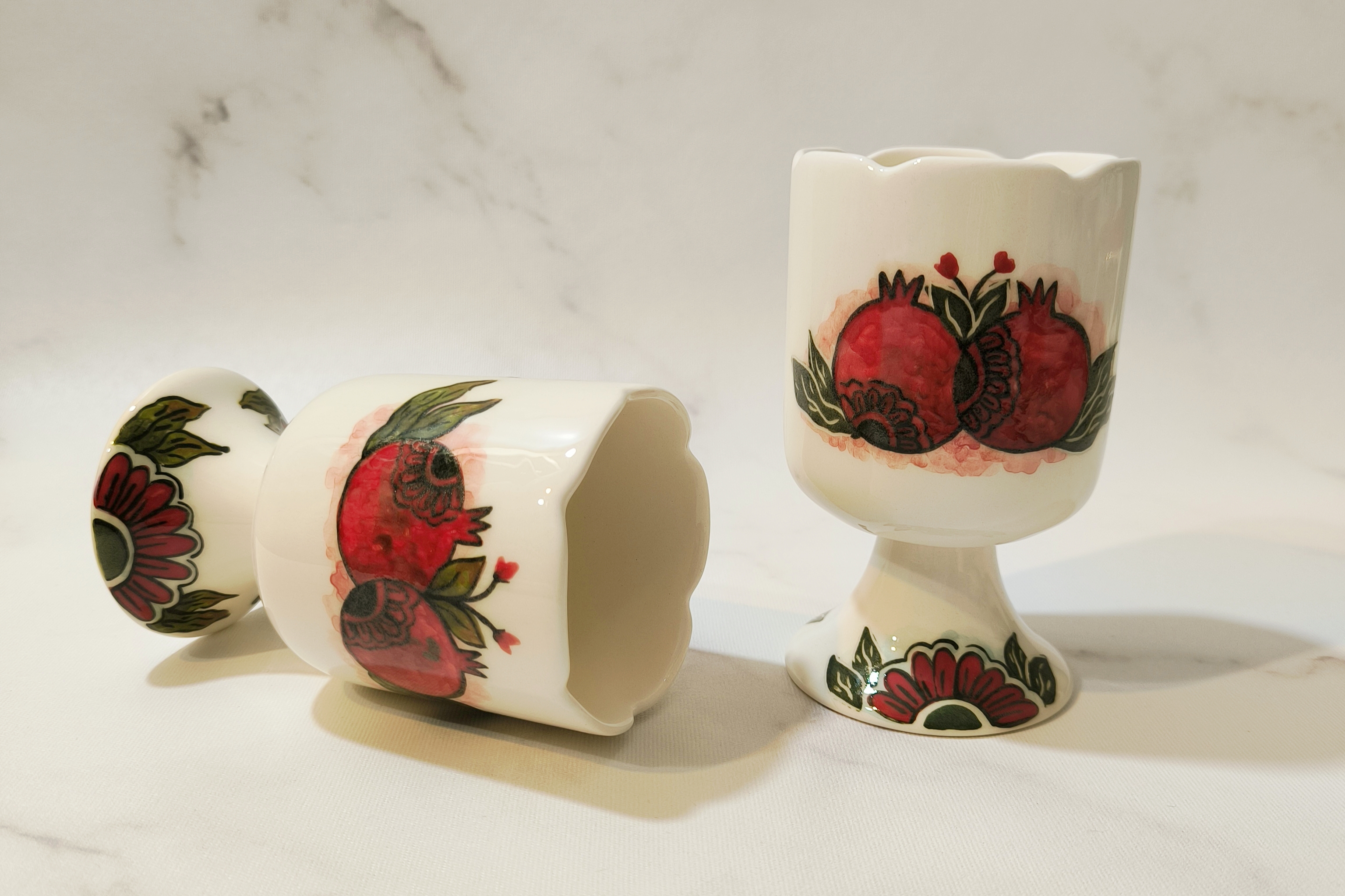 شربت خوری سرامیکی دستساز طرح انار با زیره قرمز
