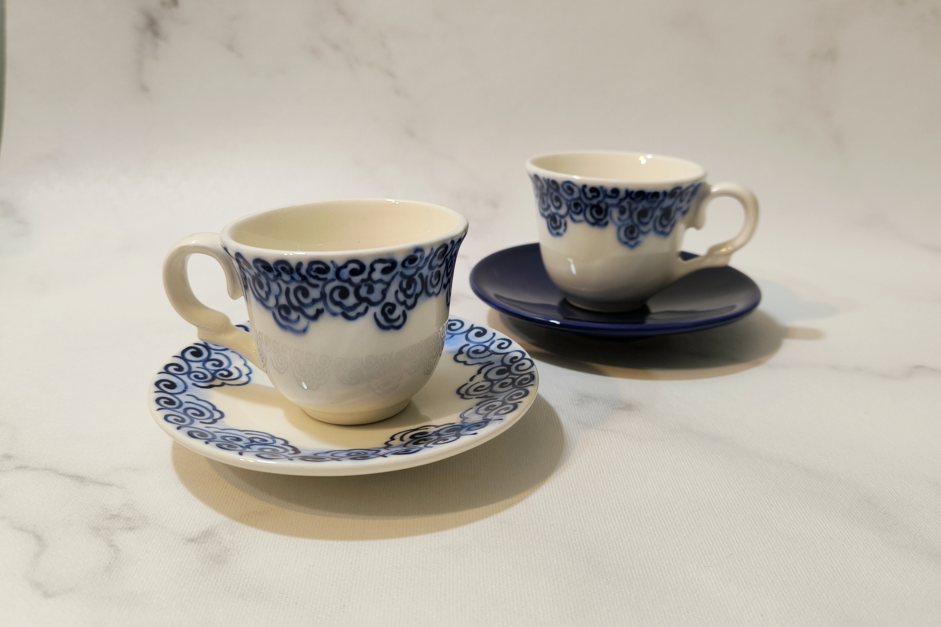 قهوه خوری سرامیکی لاجوردی و سفید دستساز با زیره