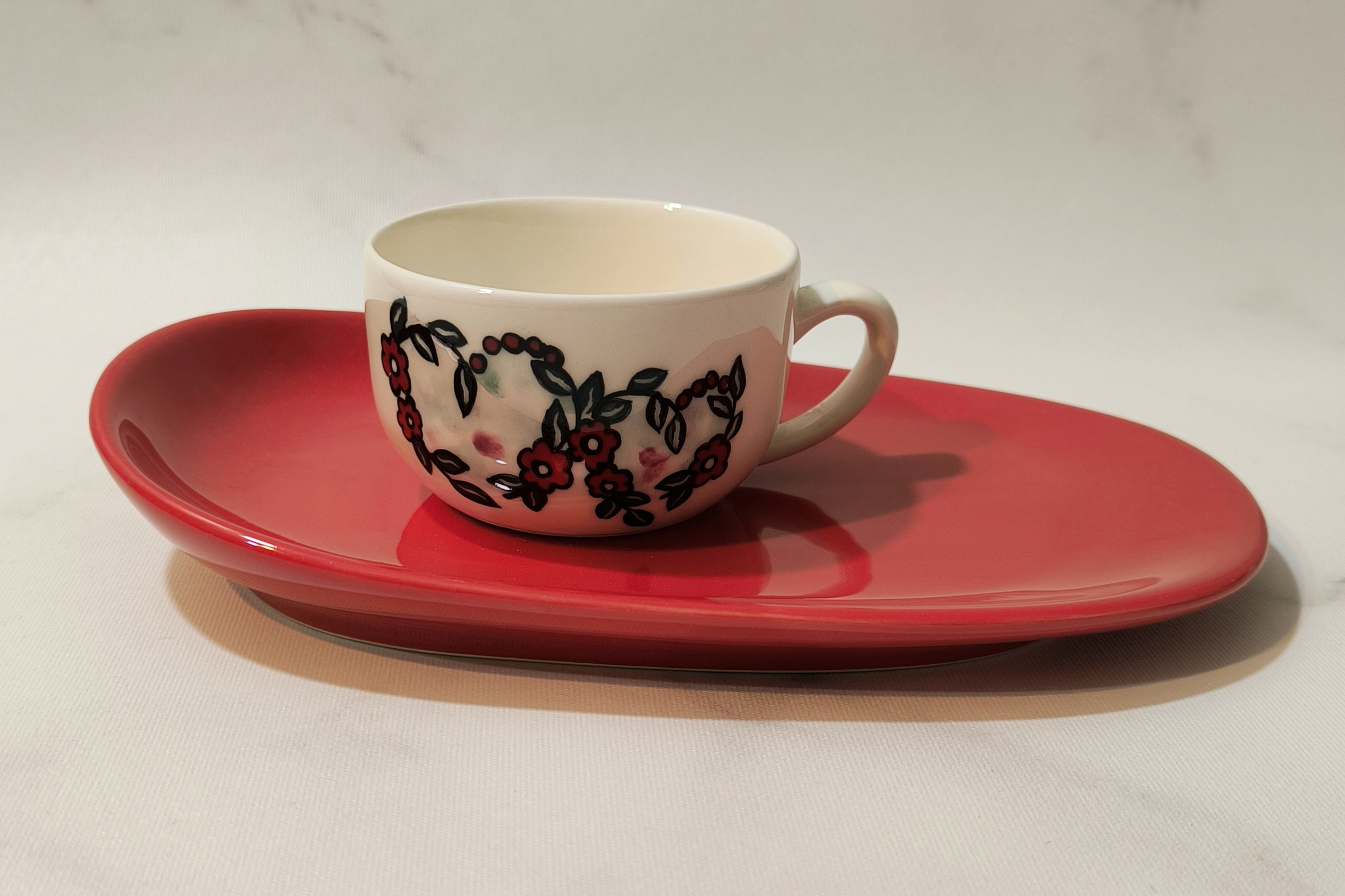فنجان قلبی و زیر فنجانی لبه دار